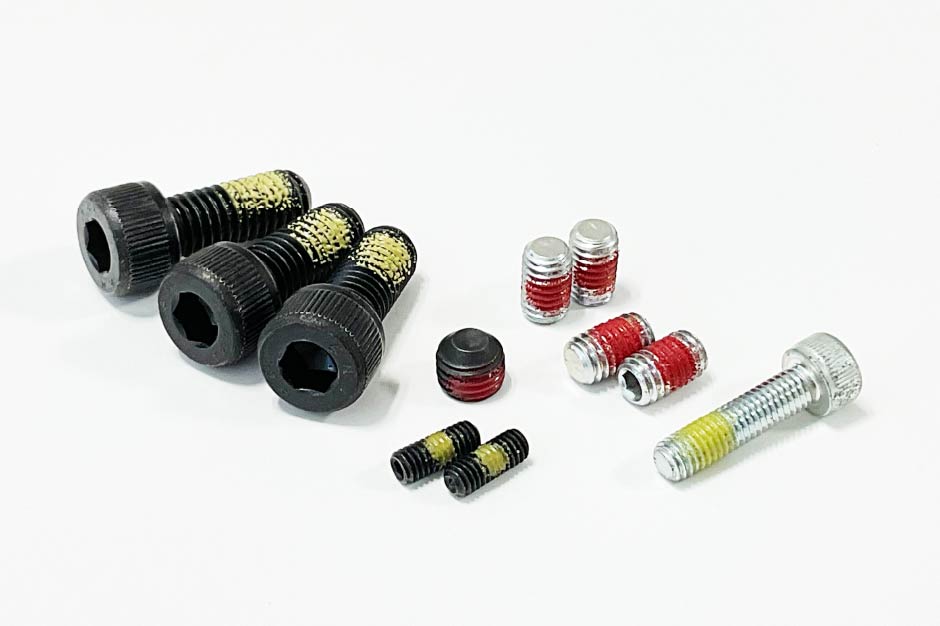 精密締結部品のゆるみ止め加工アンスコのゆるみ止めねじは、ナイロン弾性を利用した繰り返し式と、接着剤を封入したマイクロカプセルをねじ部に塗布した固着式の2種類。高いゆるみ止め性能とコスト削減を両立し、幅広い産業で採用されています。 |