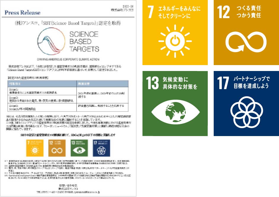 アンスコグループの一人ひとりが日々考え・学び・行動することで、SDGsの目標達成に貢献することを目指します。