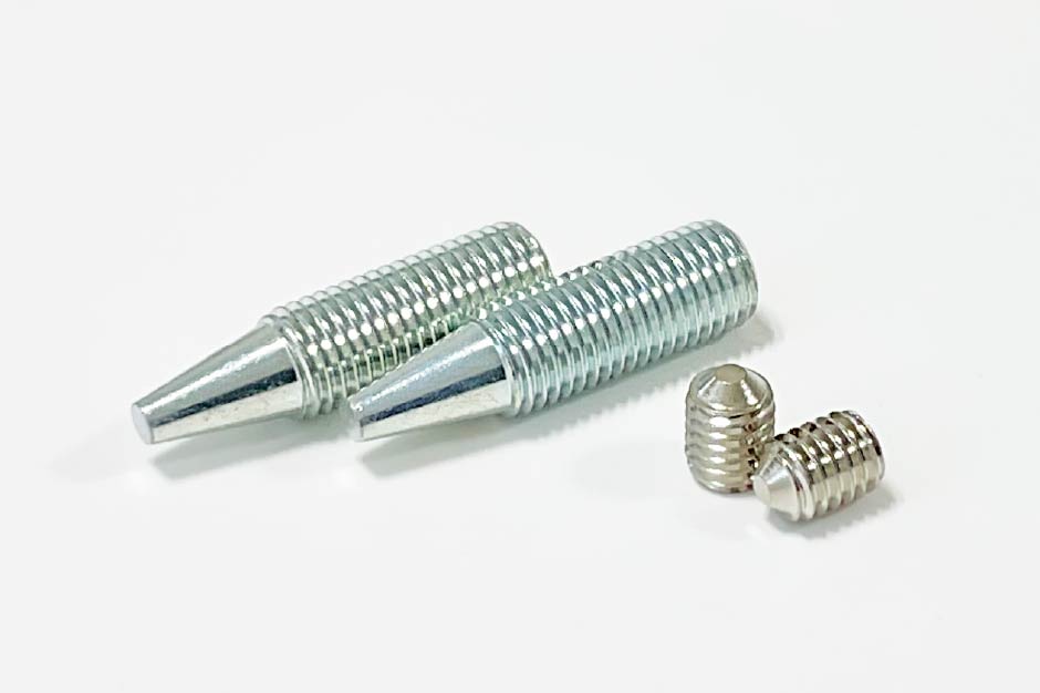 【課題】燃料の流量を微細に調整するため、止めねじを“調整ねじ”として活用したい。ねじ部は目盛として機能するため、高い精度が必要。さらに、先端の丸先形状には磨耗を抑える特殊加工を施したい。
